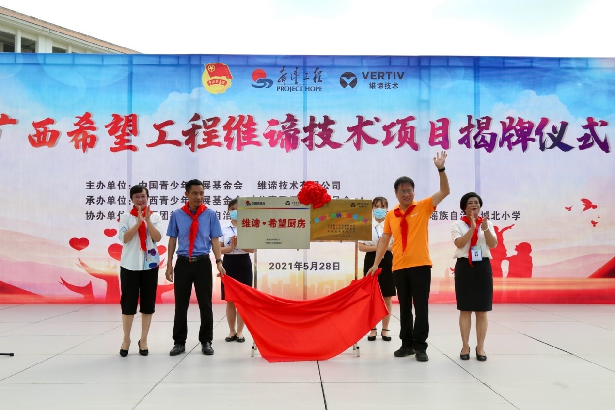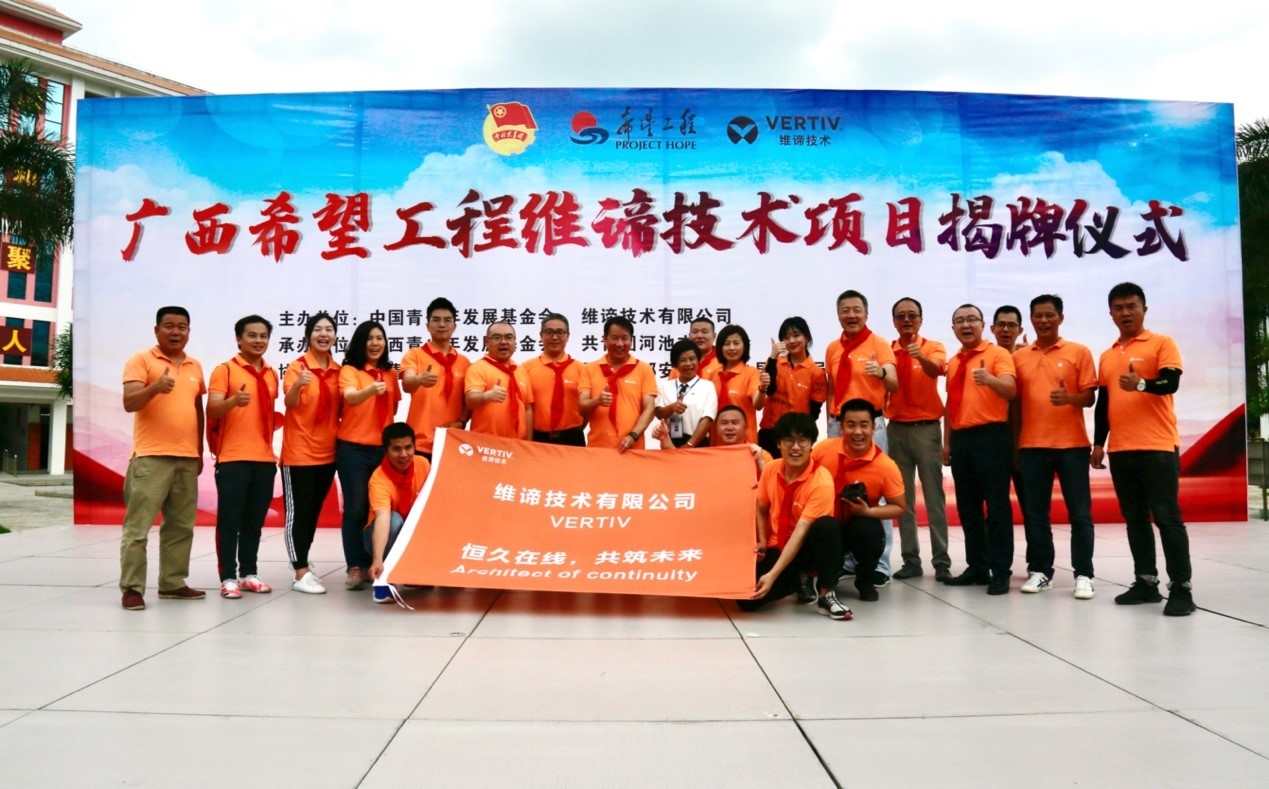 维谛技术(Vertiv)北亚区总裁祝金程、广西希望工程办公室主任、广西青少年发展基金会理事长蒋慧恒