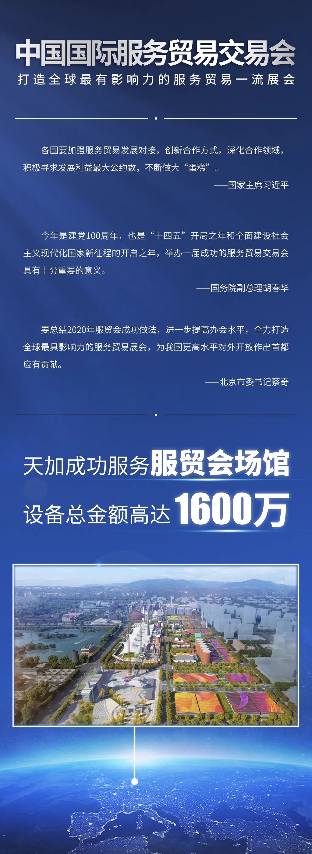 今年3月公布的《中华人民共和国国民经济和社会发展第十四个五年规划和2035年远景目标纲要》中曾特别提到服贸会——“办好中国国际进口博览会、中国进出口商品交易会、中国国际服务贸易交易会等展会”。
