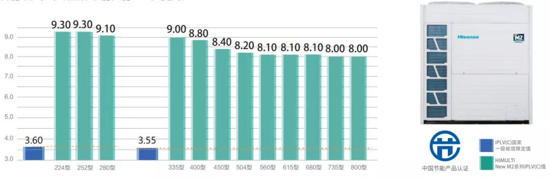 海信变频中央空调Hi-Multi New M2 系列,采用了高效高压腔涡旋压缩机和先进的变频控制技术,大幅提高了机组性能,在保障强劲稳定运行的同时,空调IPLV(C)最高值可达9.30,远超国家一级能效等级。而且它采用了搭配紧凑轻量化的模块组合方式,满足多样建筑不同空间的使用需求。为更多的工作、休闲和生活空间提供完善的空调系统解决方案!