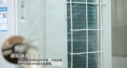 海信模拟大风暴雨的实验:在这项实验中,通过模拟8级大风,并采取高水压、长时间的“淋雨”方式,全面检测室外机的防水性能。并超高还原台风袭击时的急速旋涡立体气流,经过360°立体防台风实验实证,实现室外机电控盒防暴雨设计,保证内部滴水不进,正常运行。而这项高强度的模拟淋雨实验,海信中央空调的每一台产品都经历过。所以,客户购买到的都是已经经历过暴风雨百般锤炼后的高品质防水空调产品,尽可放心使用。