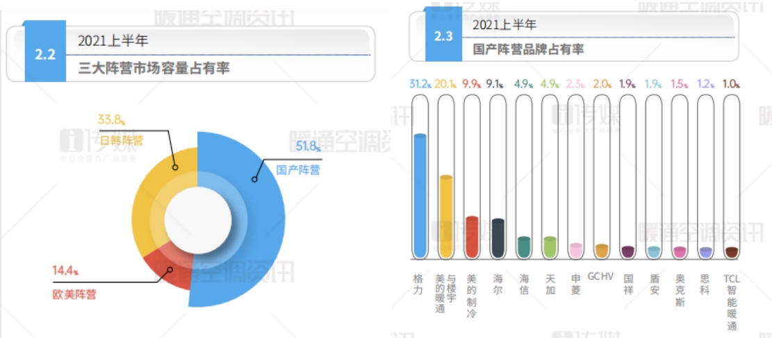 报告数据显示,2021年上半年中国中央空调市场国产阵营品牌以51.8%的占有率占据了“半壁江山”。在经历2020年第一季度的停滞和后三季度的恢复,当前国内中央空调市场已逐步复苏,以格力为代表的国产品牌迎来新的发展机遇。