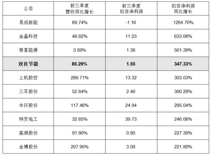 在光伏板块已正式披露三季度报告的48家公司中,双良节能前三季度无论是大幅上涨扣非净利润,还是综合财务表现方面均名列前茅。