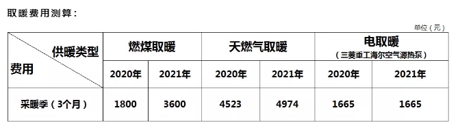对比来看,2021采暖季若使用空气源热泵产品,将比燃煤取暖节省费用54%,比燃气取暖节省费用67%!