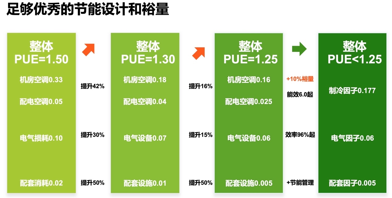 一直以来,PUE都是衡量数据中心能耗的重要指标,这个名为电源使用效率(Power Usage Effectiveness)的名词代表了数据中心消耗的所有能源与IT负载使用的能源之比。PUE值越小,越接近1表明能效水平越好。不过伴随着PUE的逐步降低,小数点后每一个数量级的降低都意味着巨大的努力,特别是在国家提出PUE1.3的目标之后,如何实现PUE能效达标,如何打造低碳高效的数据中心,成为了摆在众多从业者面前的现实问题。