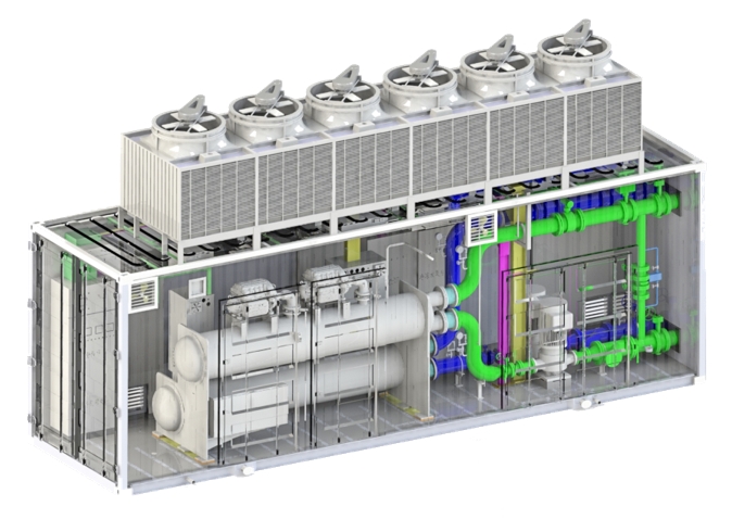 采用集成化技术,将冷水机组、水力模块、功能性设备进行系统集成。到现场后仅需连接水侧、电源侧各一组接口,即可投入使用。
