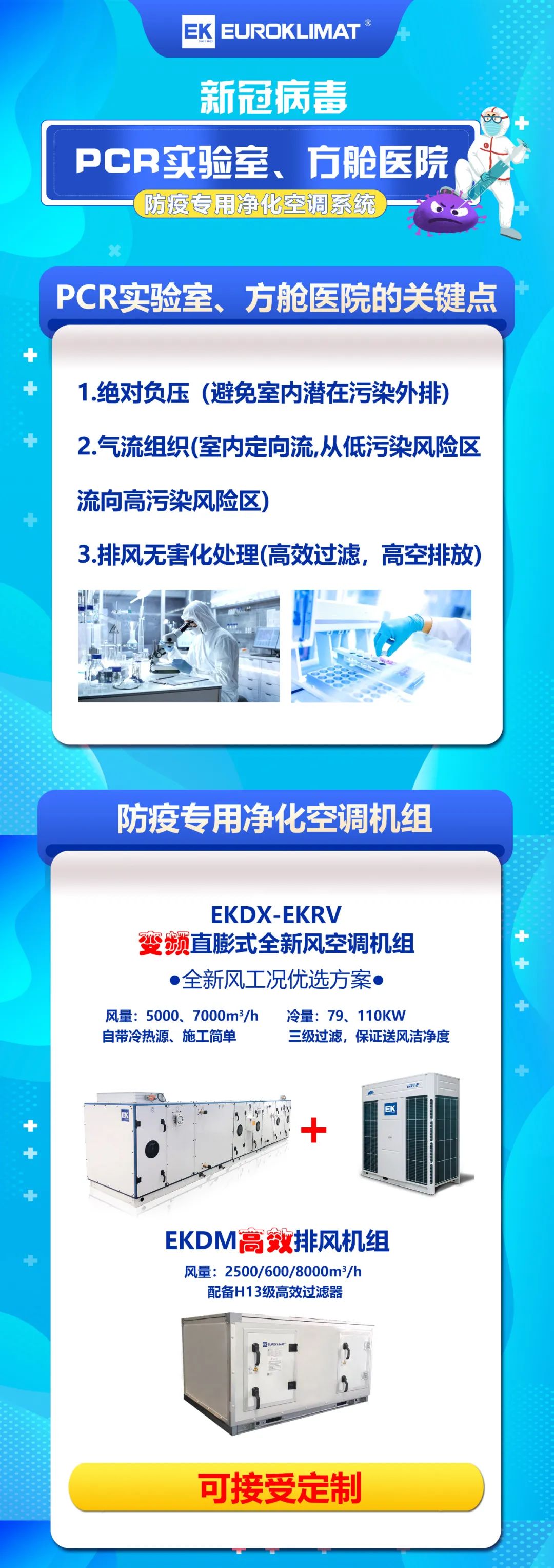 EK为PCR实验室、方舱医院提供防疫专用净化空调系统