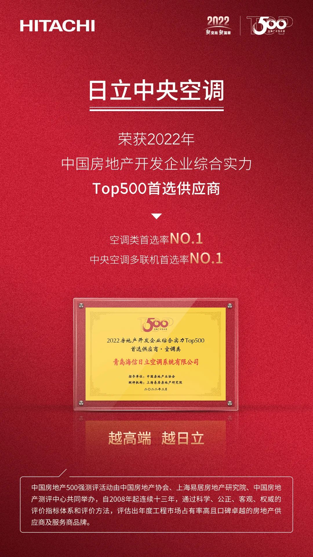 日立荣获2022中国房地产500强首选供应商空调类及中央空调多联机双料第一
