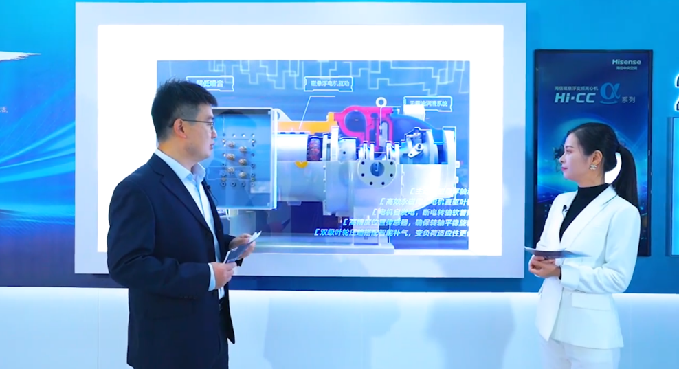 海信中央空调的运行控制中心究竟藏着哪些黑科技,在云上探馆的直播间,海信中央空调水机技术支持工程师禹洋,通过磁悬浮离心机和普通离心机模型的运行对比,向网友们详细介绍了搭载磁悬浮离心式压缩机的冷水机组优势。