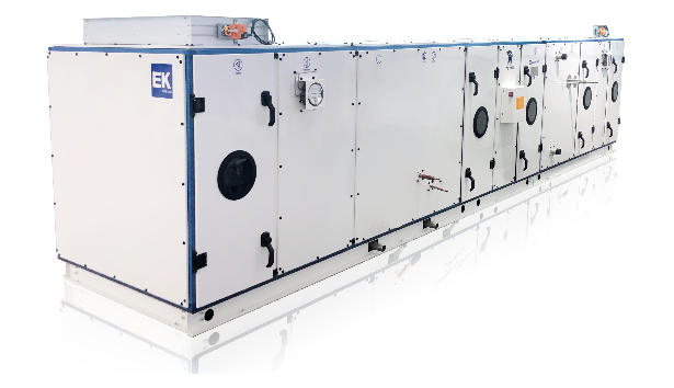 EKRT屋顶式空气处理机组配有各种功能段,可方便实现制冷、制热、加湿、空气净化、新风节能等各种功能。机组带有过滤、新风装置,可为室内提供高品质新鲜空气。可通过加上特别设计的装置,实现PCR实验室空气净化、恒温恒湿需求。