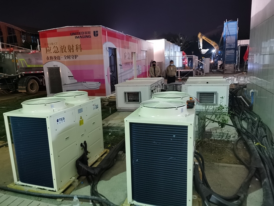 天加方面工程人员介绍,截止目前天加在国内设有南京、天津、广州、成都四地工厂,自有产品研发制造、仓储物流、配套安装的一体化解决方案以保障项目交付快速响应,减少重复采购、运输等诸多流程,最大程度上缩短方舱医院建设周期。