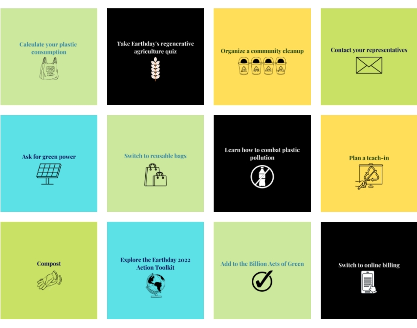世界地球日官网向人们发出了「52种投资地球的方式」倡议,帮助大家找到合适的“投资方式”,为保护地球贡献自己的力量。