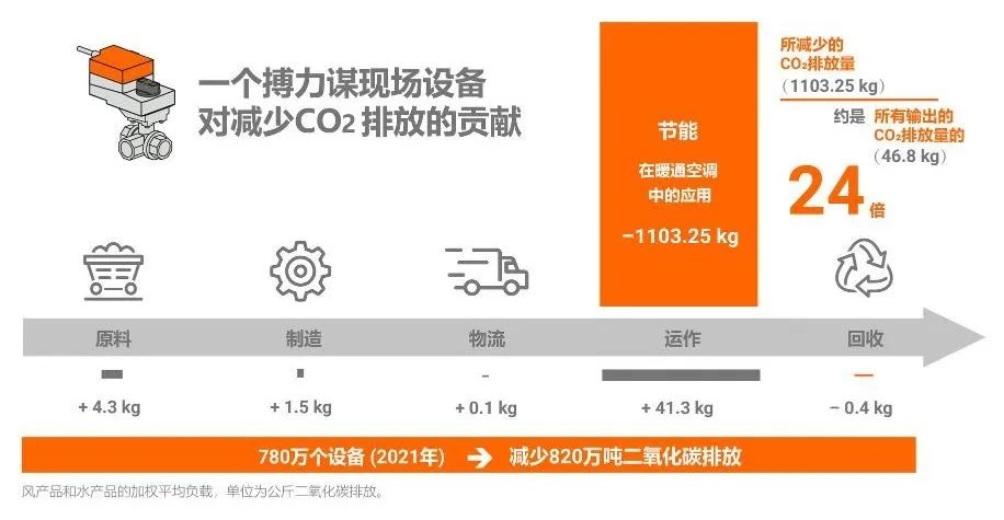 有数据显示,2021年搏力谋交付的550万风门执行器和230万个阀门及执行器产品,将在其全生命周期中有效减少820万吨的CO2e排放量。