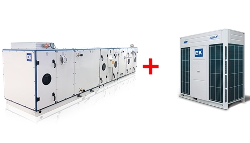 在新昌核酸检测基地项目中,EK空调工程师经过现场勘察和技术沟通后,制定的解决方案为:EKRT配EKRV变频直膨净化解决方案。