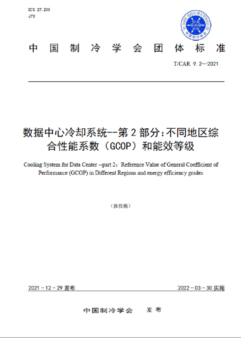 此外,由麦克维尔参与编写的中国制冷学会3部团体标准《T/CAR8-2021数据中心用冷水机组性能试验与评价方法》、《T/CAR9.1-2021数据中心冷却系统—第1部分:综合性能系数(GCOP)测试与计算方法》、《T/CAR9.21-2021数据中心冷却系统—第2部分不同地区综合性能系数(GCOP)测试与计算方法》也已2022年3月正式实施。