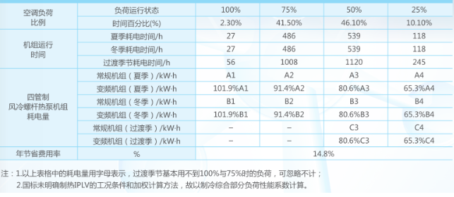 分别以1台330RT常规四管制风冷冷热水机组、1台330RT变频四管制风冷冷热水机组为例。