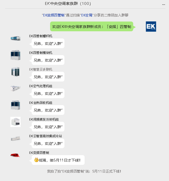 面对激烈的市场竞争环境,EK空调持续创新,深入了解客户需求,不断推出各种高品质的节能中央空调产品。5月11日,EK新品——变频四管制螺杆式风冷冷热水机组将正式下线生产,为广大客户提供专业、高效的节能中央空调服务。