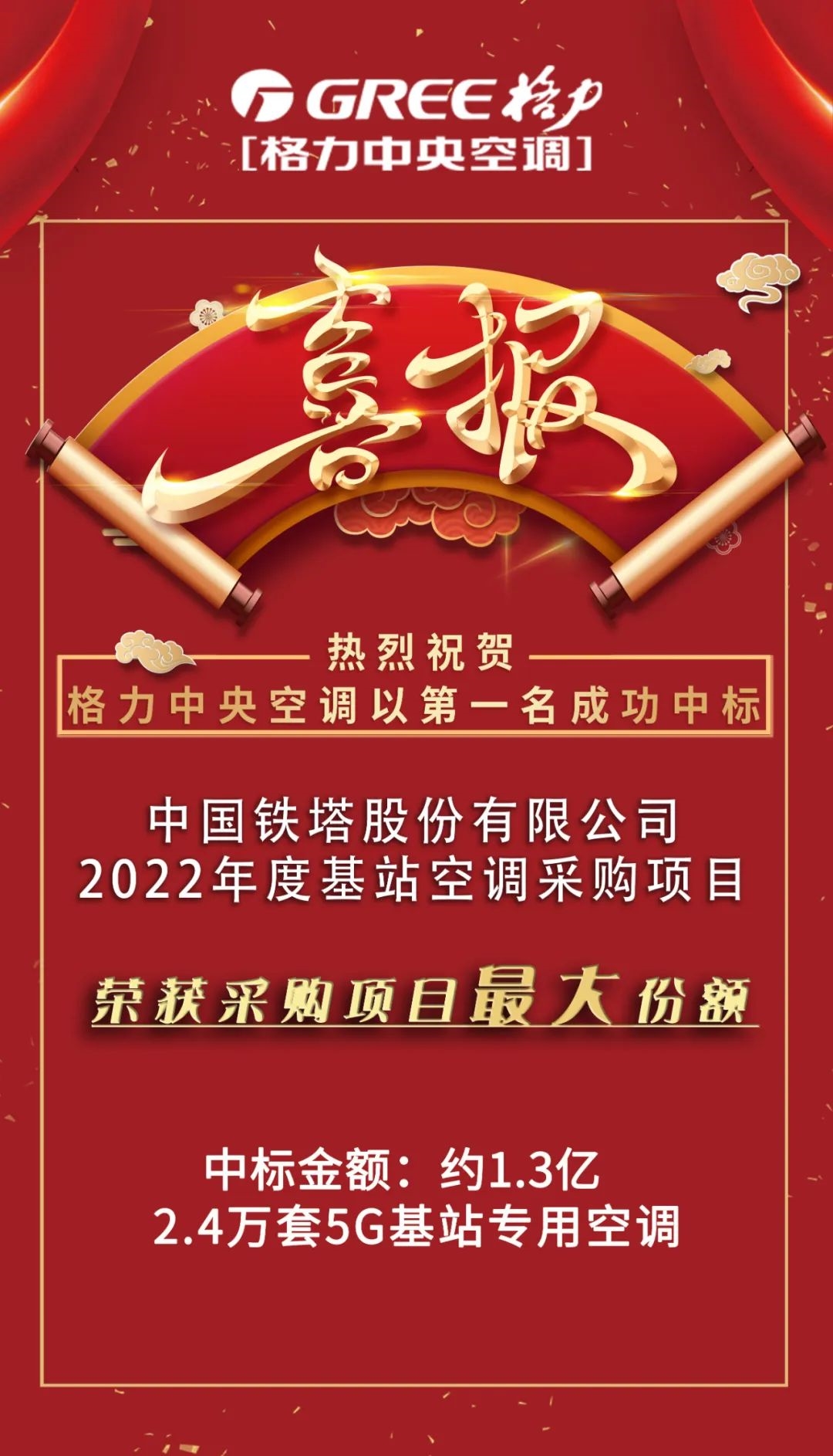 格力以第一份额中标 | 中国铁塔2022年度5G基站空调集采项目