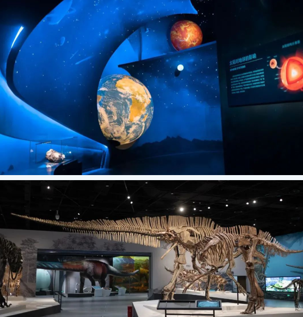 博物馆展厅面积共17005平方米,共设6大主题展厅,包括地质环境厅、矿产资源厅、龙行川渝厅、探秘恐龙厅、生命探源厅、缤纷生命厅,同时配设临时展厅,4D影院、学术报告厅等。