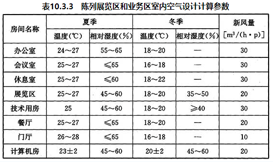 博物馆的陈列展览区和业务区宜设置空调,室内空气设计计算参数宜符合表10.3.3的规定。
