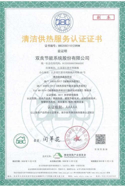 清洁供热服务认证是中国清洁供热产业首个服务认证,对于提升清洁供热企业服务质量、规范市场秩序、促进中国清洁供热产业持续健康发展具有重大意义。双良获得清洁供热服务5A级认证,体现了行业对双良节能各项综合优势的高度认可和肯定。