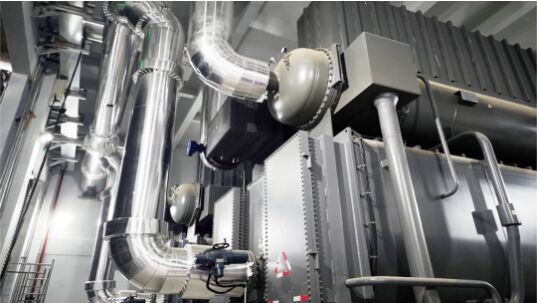 长输中继能源站大温差项目,采用16台60MW溴化锂吸收式换热机组降低零次侧热网回水温度,热网回水利用电厂或工业余热进行加热,一个采暖期余热供热可实现二氧化碳减排32.75万吨。