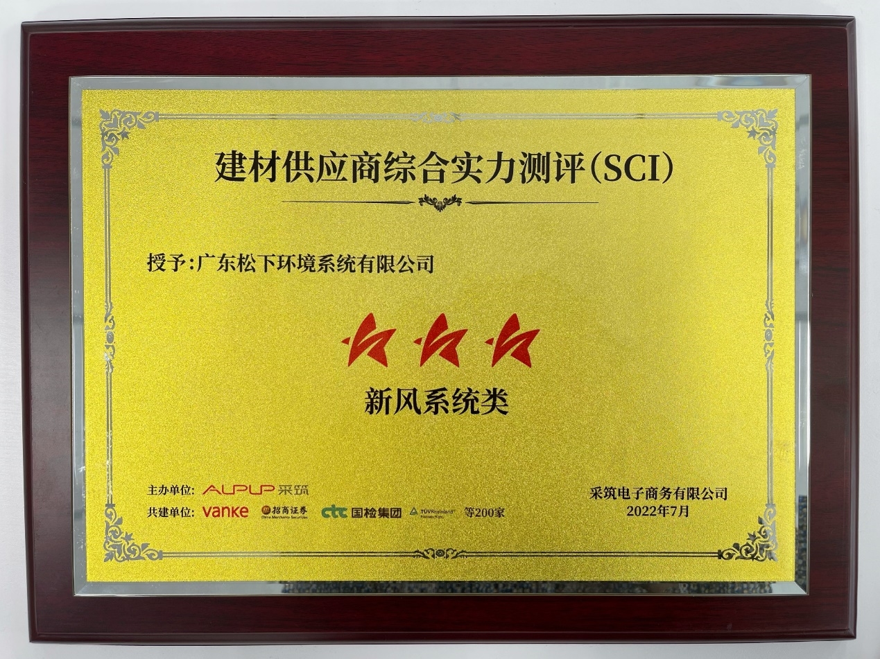 喜讯!松下荣获采筑供应商综合指数SCI“三星供应商”奖项!