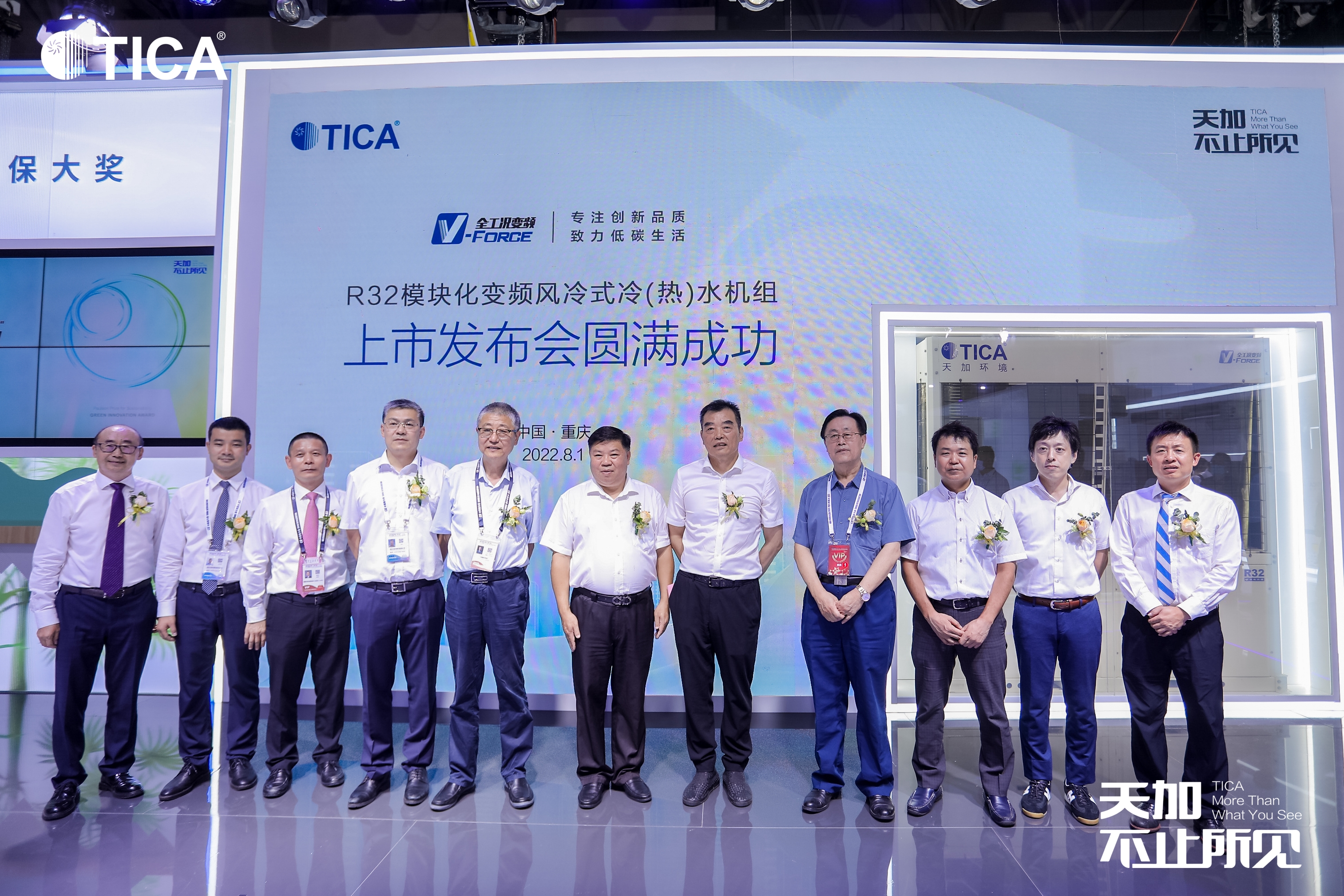 众所周知,出于对大气臭氧层的保护,中国工商制冷行业从2013年开始冻结CFCs类似制冷剂的生产和使用,由此加速了R22冷媒的淘汰,同时也促进了R410a制冷剂的大量使用。随着制冷剂替代工作的不断深入,也其温室效应潜能值较高,去年R410a制冷剂被纳入受监管的范围,制冷行业再次面临新的挑战。面对困境,天加积极采取行动,主动推进新型环保冷媒系列产品的研发制造。今年上半年,天加推出全系列R513a水冷螺杆机产品,并在全力加速R134a磁悬浮离心机、R32多联机及R290户式水机等产品的研发。而V-FORCE系列R32模块化变频风冷冷热水机组是天加在双碳目标及冷媒替代行业,双重背景下研发出的一款新冷媒全变频模块机产品。采用了对大气臭氧层零破坏、温室效应比R410a低75%以上的R32环保制冷剂,符合国家中长期制冷剂发展趋势。