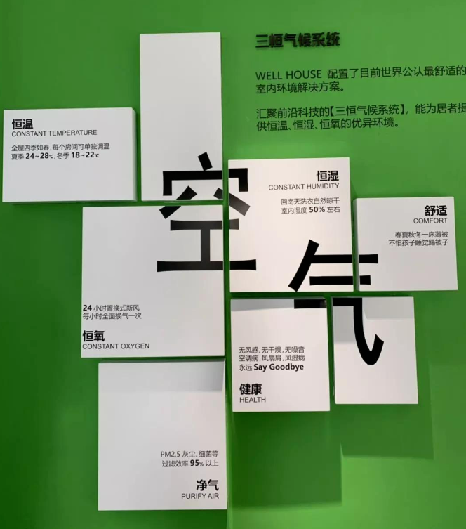 WELL是WELL建筑标准™(源自美国的健康建筑标准)的简称,是专门针对于人体健康所提出的建筑认证与评价标准,旨在通过测量、认证和监测空气、水、营养、光线、健康、舒适和精神等建筑环境特征,解决住户健康、舒适性或特定方面的问题,全方位保障居住健康。