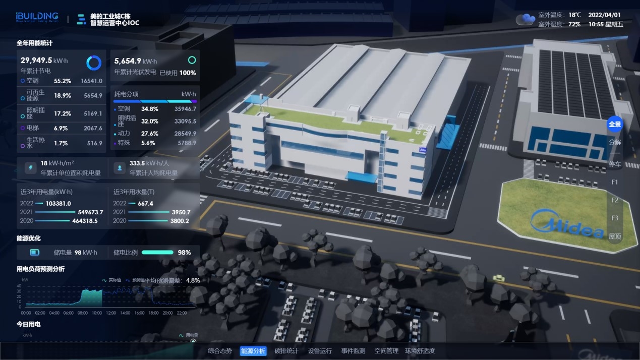 美的楼宇科技作为美的集团数智驱动战略中的重要业务板块,于2021年正式转型“智慧建筑生态集成解决方案服务商”,并于2022年1月正式对外发布iBUILDING美的楼宇数字化平台,打造了一个智慧建筑云技术中台和业务、数据、算法、知识等多个服务中台,解决了智慧建筑中设备设施的统一接入和互联互通、数字孪生能力、开放平台打造、节能降碳等一系列的问题,不断助力建筑及相关行业的数字化转型升级,并先后于佛山和美术馆、上海同济医院、梅林万科大厦、美的工业城等地落地应用。当前,iBUILDING数字化赋能项目已荣获2022年墨尔本设计奖一金四银、2022年美国IDEA设计奖等多项国际大奖。