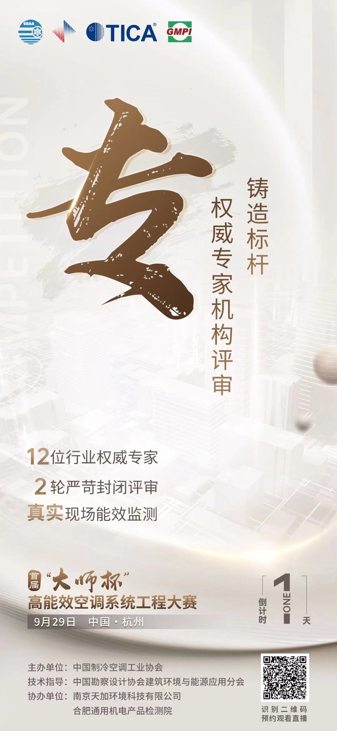 由中国勘察设计协会taptap手机官网、中国制冷空调工业协会联合主办,南京天加环境科技有限公司、合肥通用机电产品检测院有限公司协办的首届“大师杯”高效taptap点点手机端系统设计大赛颁奖典礼即将于9月29日在杭州隆重开幕。