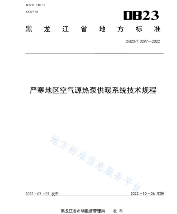 EK空调参编《严寒地区空气源热泵供暖系统技术规程》正式发布实施