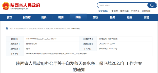 《陕西省蓝天保卫战2022年工作方案》:深入推进清洁取暖和散煤治理。统筹兼顾温暖过冬与清洁取暖,到2022年底,全省(关中、陕北)清洁取暖率达90%左右。