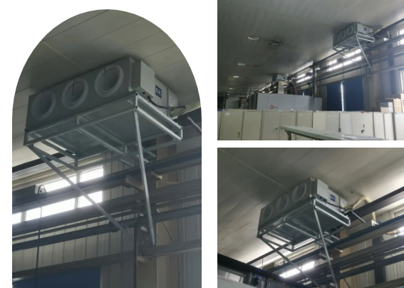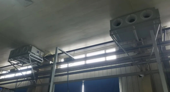 整个车间跨很大,所以采用EKSL-A射流机组,机组自带球形出风喷口,最远实现30m射流解决方案。
