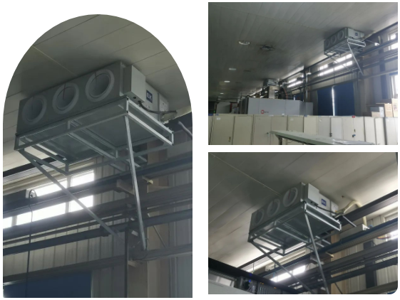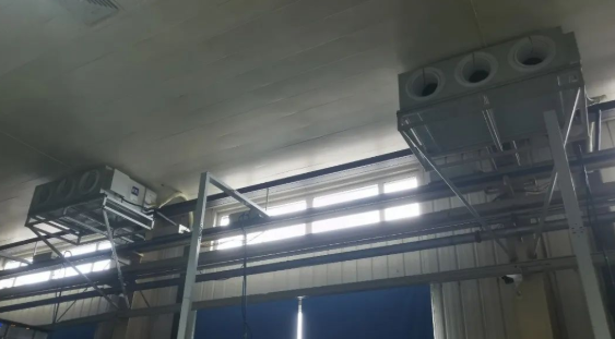 整个车间跨很大,所以采用EKSL-A射流机组,机组自带球形出风喷口,最远实现30m射流解决方案。