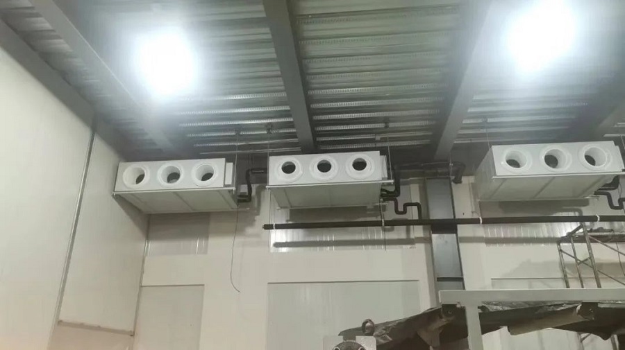 整个车间跨很大,所以采用EKSL-A射流机组,机组自带球形出风喷口,最远实现30m射流解决方案。