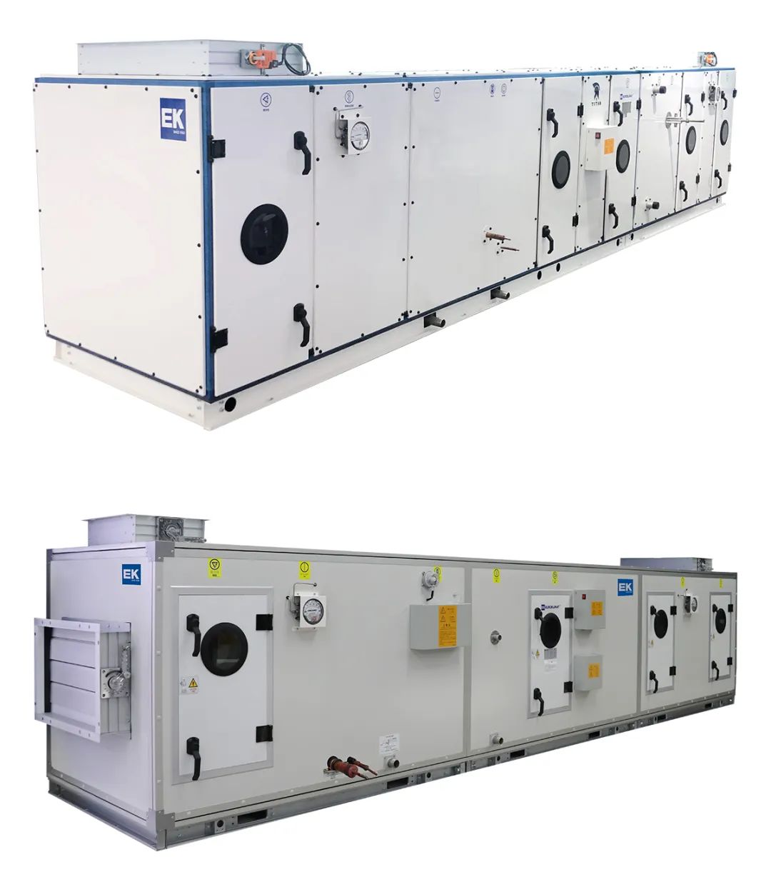 EKDX直膨组合式空气处理机组是集送风、制冷、供热、加湿、除湿、空气净化及电气控制组合为一体的大中型空调设备。该机组能适应室外-30℃~55℃的宽广气温范围,具有外型美观、布置方便、使用灵活、高承压、高能效等特点,可根据客户的需求提供专业的自动控制方案,实现机组的精确、经济、稳定运行。