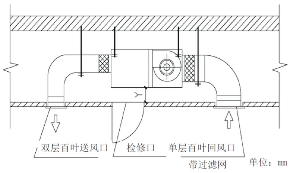 例一:酒店客房,采用暗装吊顶式风管机,送风口适宜使用双层可调百叶。