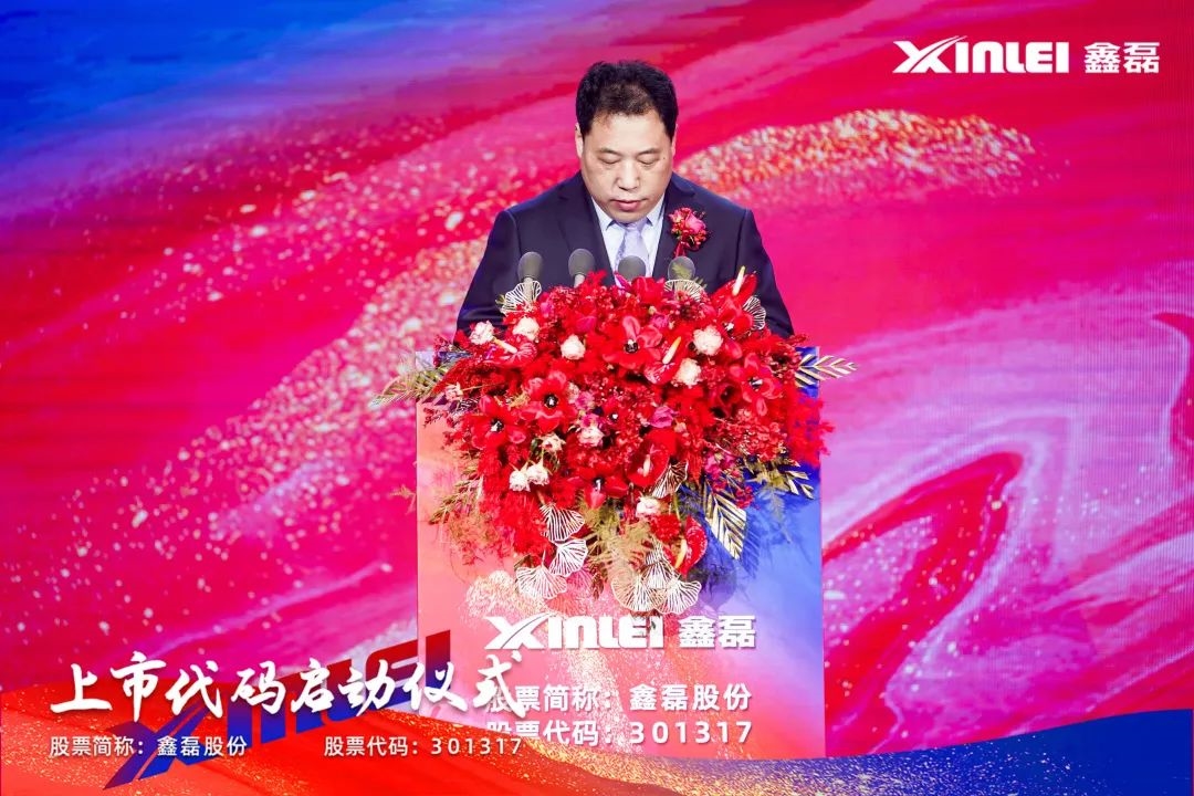 上市首日,温岭市市委副书记、市长马厉财先生出席鑫磊股份的上市仪式并致辞。