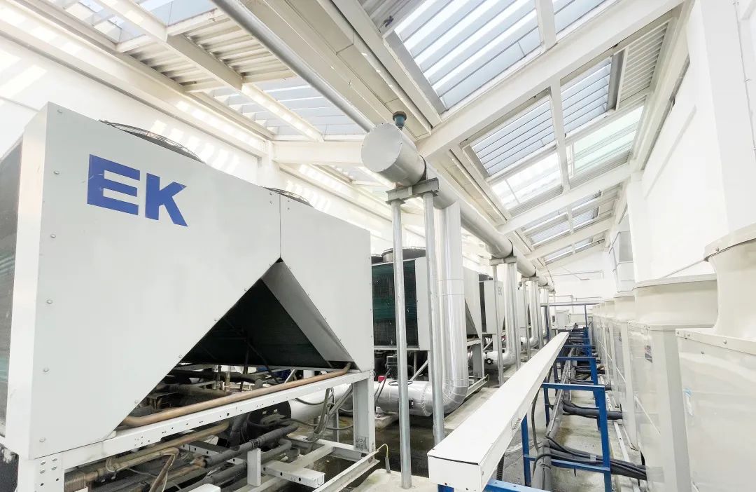 凭借在暖通行业的领先实力,EK空调在众多竞标品牌中脱颖而出,为苏州市第二工人文化宫提供8台EKAS高效型螺杆式风冷冷水(热泵)机组和若干末端设备。EKAS高效型螺杆式风冷冷水(热泵)机组可满足项目各功能区域四季冷热源需求,且具有高效性、节能性、舒适性、可靠性等特点。
