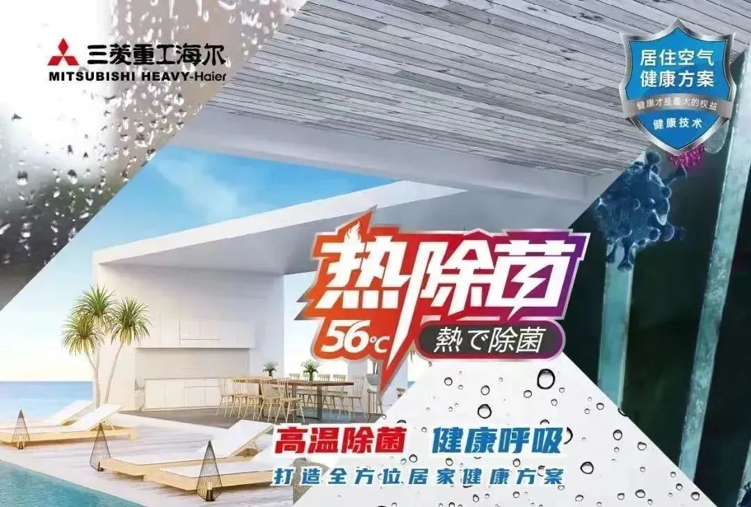 该项目作为该地区首个“悦府”系高端产品,对居住环境的空气清洁度有着严格要求,保证空气清洁健康是对空调产品提出的又一难题。为此,三菱重工海尔给出“热除菌”的解决方案,56℃高温下持续杀菌30分钟,即可有效灭除99%的细菌、霉菌、病毒,实现健康空气自由呼吸。