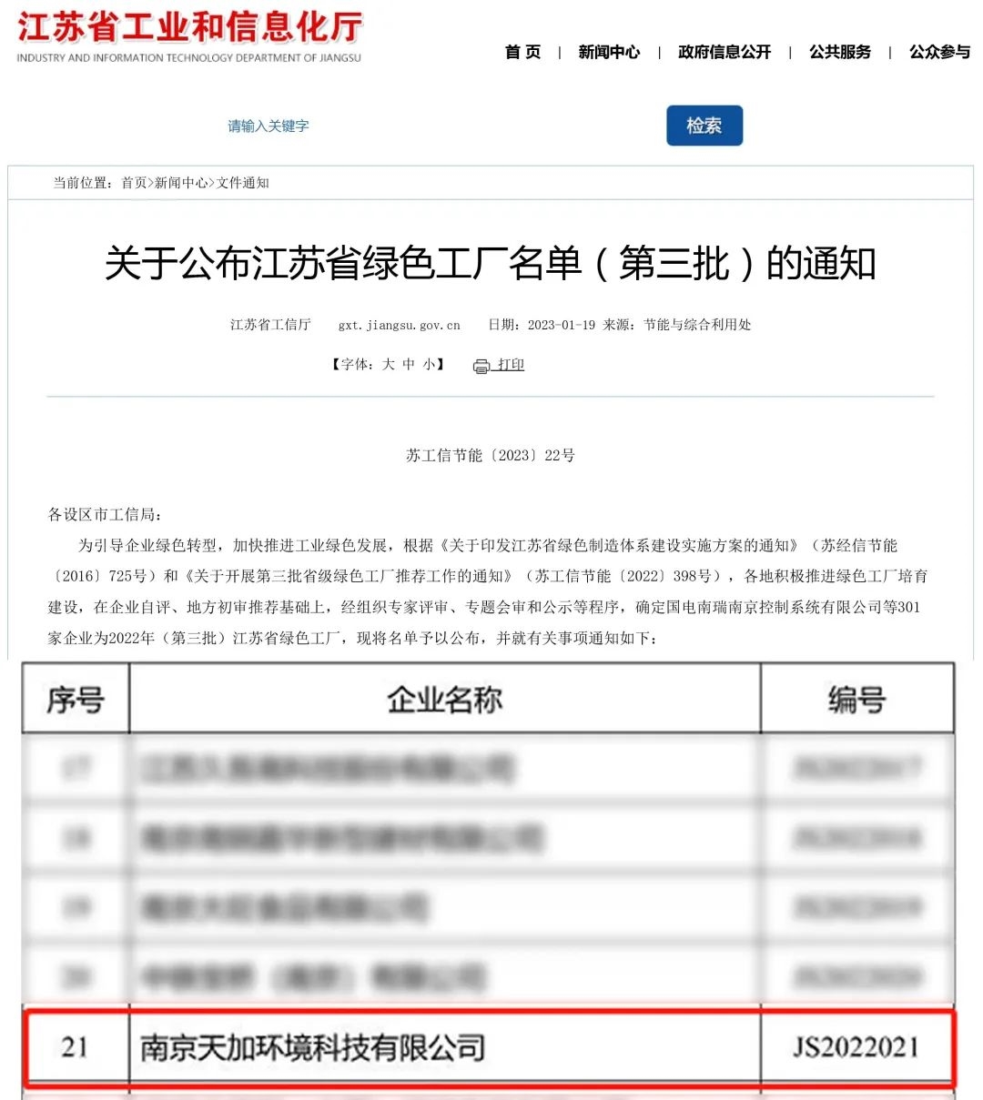 近日,省工信厅公示了江苏省绿色工厂名单(第三批),南京天加环境科技有限公司榜上有名。
