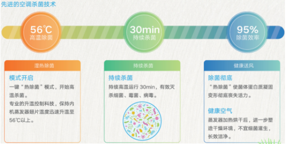 McQuay家用多联机采用先进的热除菌技术,采用强劲的动力输出及第5代智能能力控制系统,通过精准的升温技术,把室内机换热器翅片温度提升至56°C以上,把附着在空调上的细菌及病毒等灭杀。