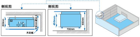 机组深度仅450mm,高度仅210mm,能适应狭小的安装空间;噪声低至26dB(A),夜间睡眠更安稳~