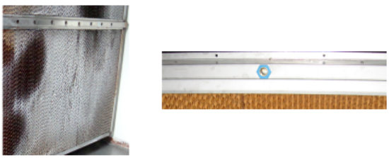 ● 湿膜加湿器:定期清洗检查,清洗湿膜表面的水垢,及布水器。除垢剂按一定比例兑水(视水垢多少而定),将湿膜浸泡在内直至表面无水垢即可。浸泡完毕后,用清水将湿膜冲洗干净,晾干即可。布水器的清洗,将布水器从边框上拆下,浸泡到清洗液中,清理淋水孔。如果孔堵塞严重,就需要用微针清理。(建议清洗周期:半年1次;建议更换周期:2-3年)