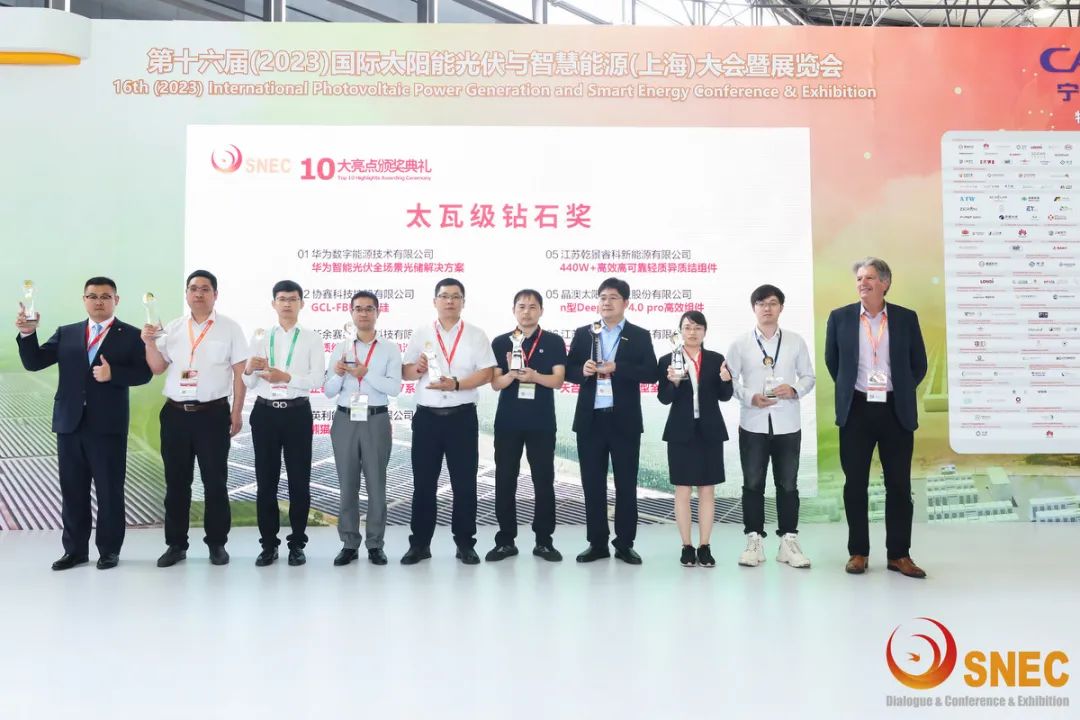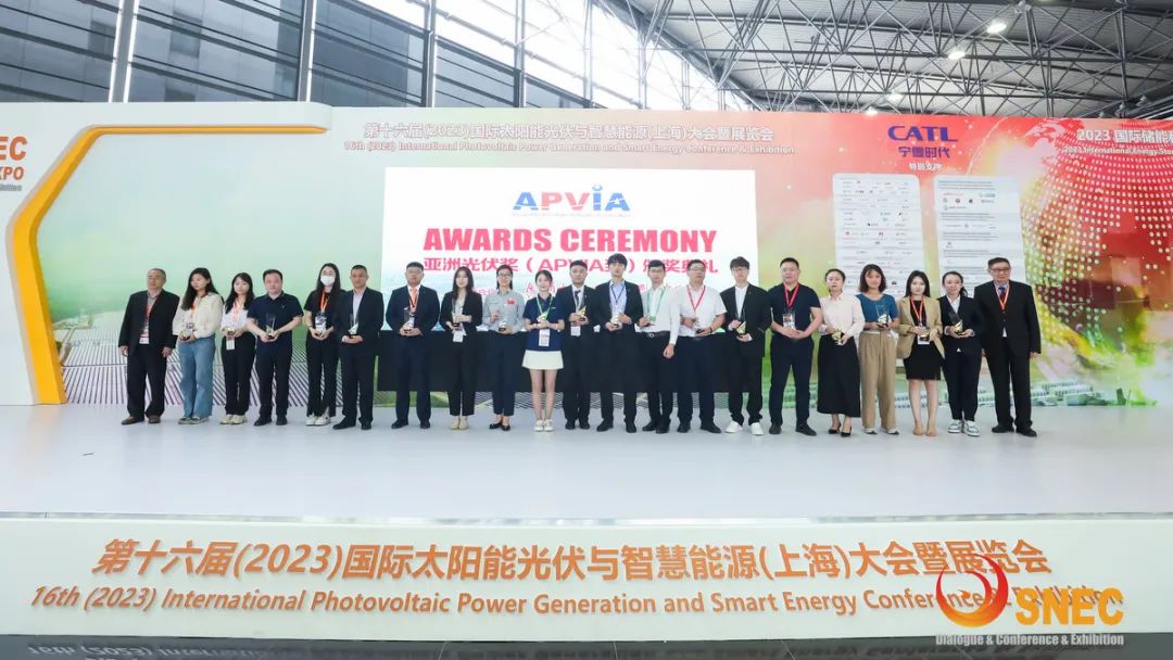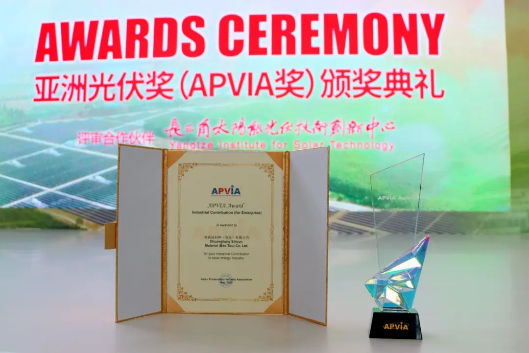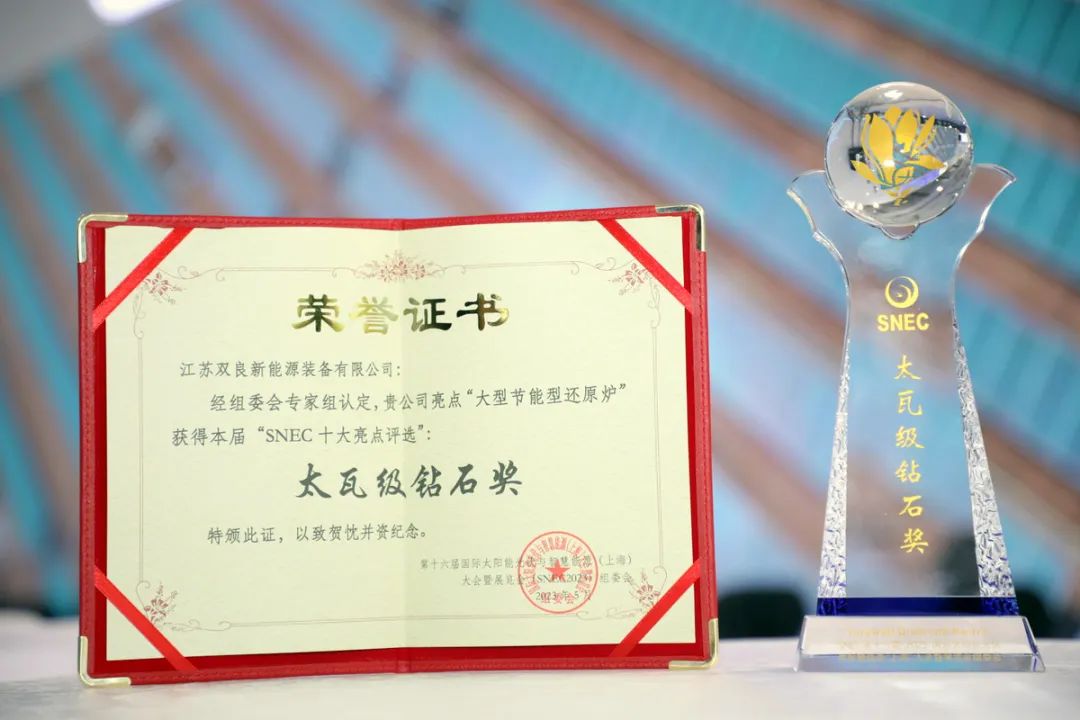 5月26日,SNEC第十六届(2023)国际太阳能光伏与智慧能源(上海)大会暨展览会进入第三天,备受瞩目的SNEC2023“十大亮点”颁奖仪式和2023APVIA亚洲光伏奖颁奖典礼在上海新国际博览中心3 号入口厅如期举行,双良大型节能型还原炉荣获“十大亮点评选”太瓦级钻石奖,双良硅材料(包头)有限公司(以下简称“双良硅材料”)荣获亚洲光伏奖产业贡献奖,双良新能科技(包头)有限公司(以下简称“双良新能科技”)荣获亚洲光伏奖科技成就奖。连获三项大奖,为本届双良SNEC光伏展画下圆满的句号。