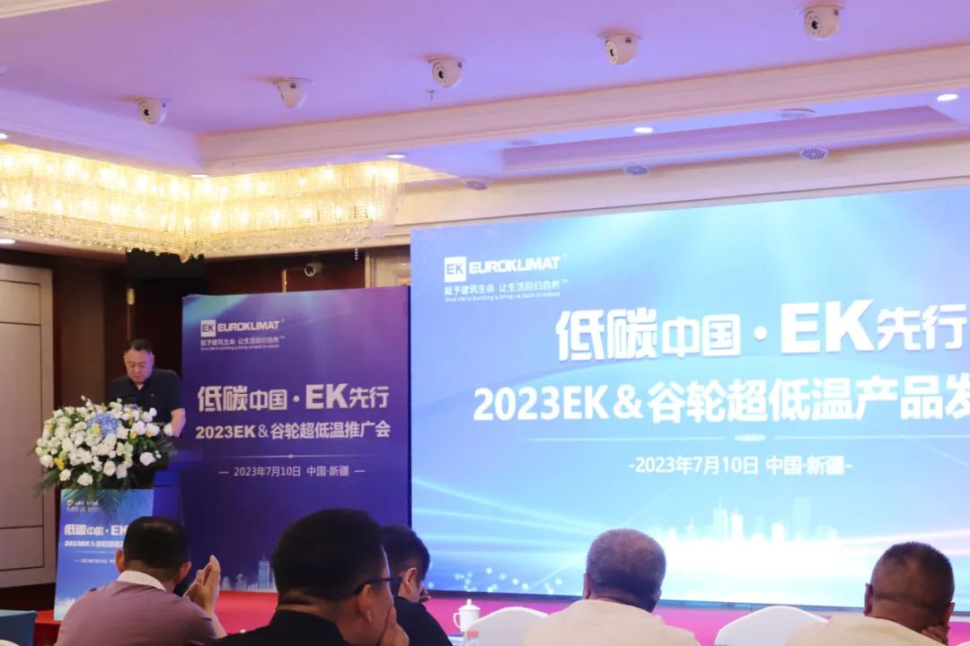 7月10日,低碳中国·EK先行——2023 EK&谷轮超低温产品发布会(新疆站)在乌鲁木齐隆重举行。EK空调中国区市场营销总监王健、新疆办事处总经理陈立、产品经理陈旭金等领导,谷轮环境技术有限公司高级销售经理刘卫忠、销售经理夏晓辉、市场部经理康静以及来自新疆地区的100余名EK核心经销商齐聚一堂,共襄盛会。新疆暖通协会秘书长、新疆建筑设计研究院有限公司机电二院院长张峰等行业专家应邀出席。