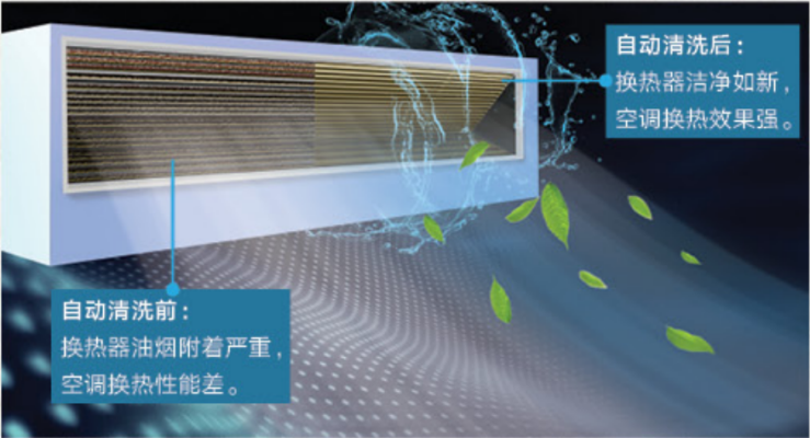 ③清 洁:进行除霜,将换热器表面的油烟颗粒带走