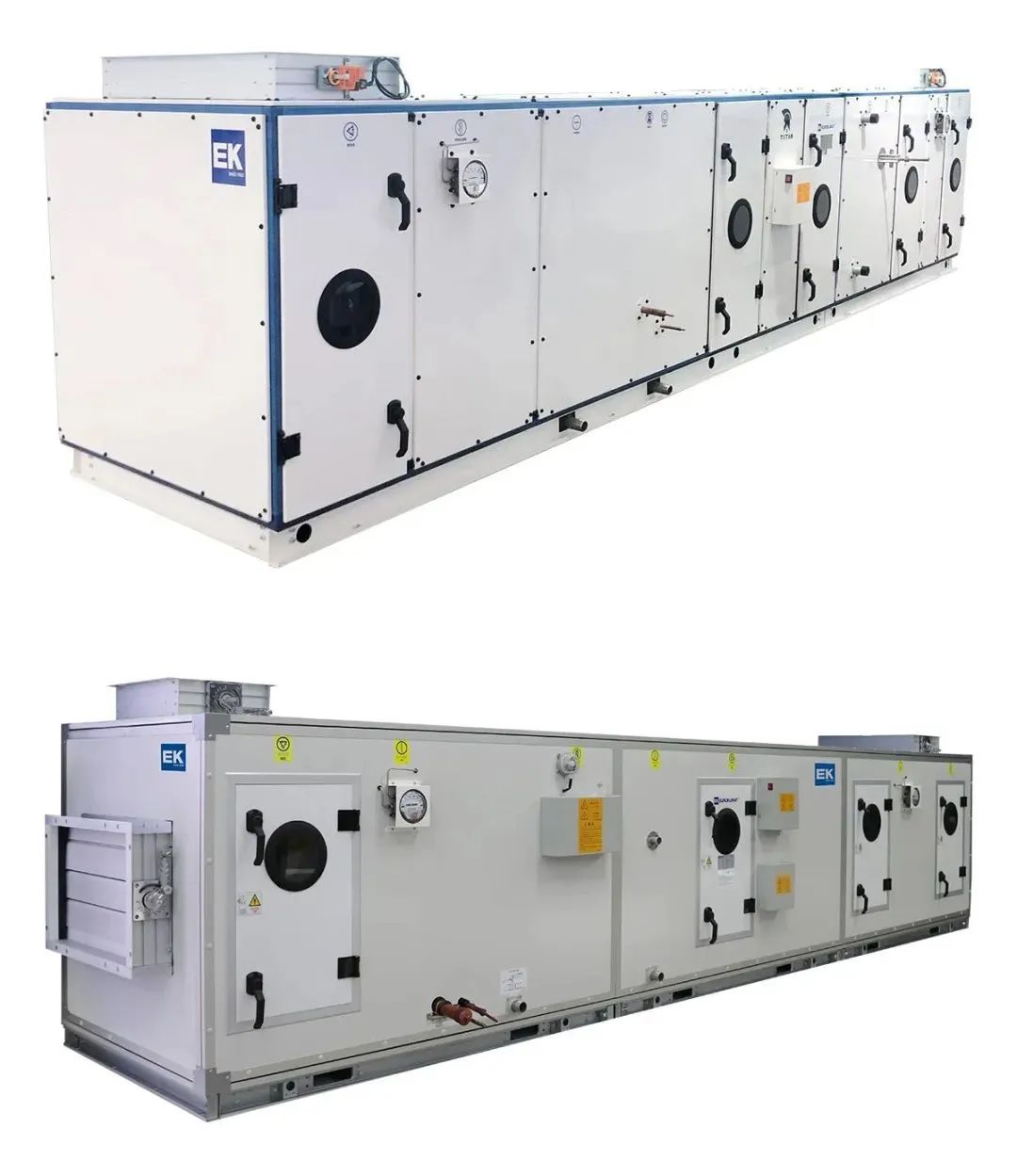 EKDX变频直膨式空气处理机组集送风、制冷、供热、加湿、除湿、空气净化及电气控制组合为一体,能适应室外-30℃~55℃的宽广气温范围,满足高洁净等级、恒温恒湿、低噪音控制的洁净室工程。