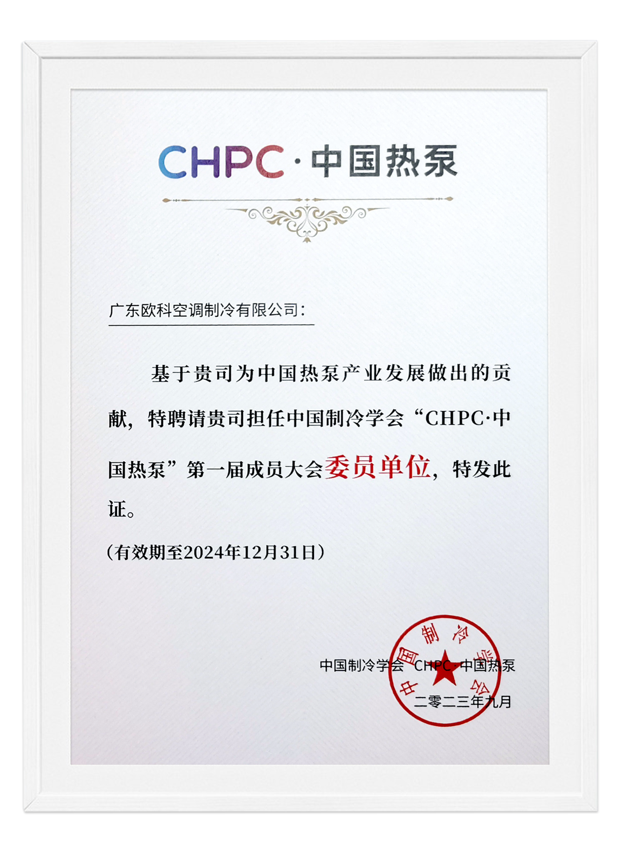 载誉而行,EK空调当选“CHPC·中国热泵”委员单位!