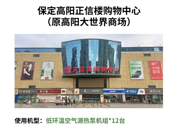 保定易县惠友万悦城位于河北省保定市易县阳元北大街,是集主题商街、精品公寓及品质华宅于一体全时态、全功能、全业态覆盖的城市综合体。项目节能性要求高,麦克维尔MAC-XE系列低环温空气源热泵机组满足需求,机组制热COP最高可达3.64,制冷COP最高可达3.48,获国家一级能效,并获得中国节能产品认证证书。